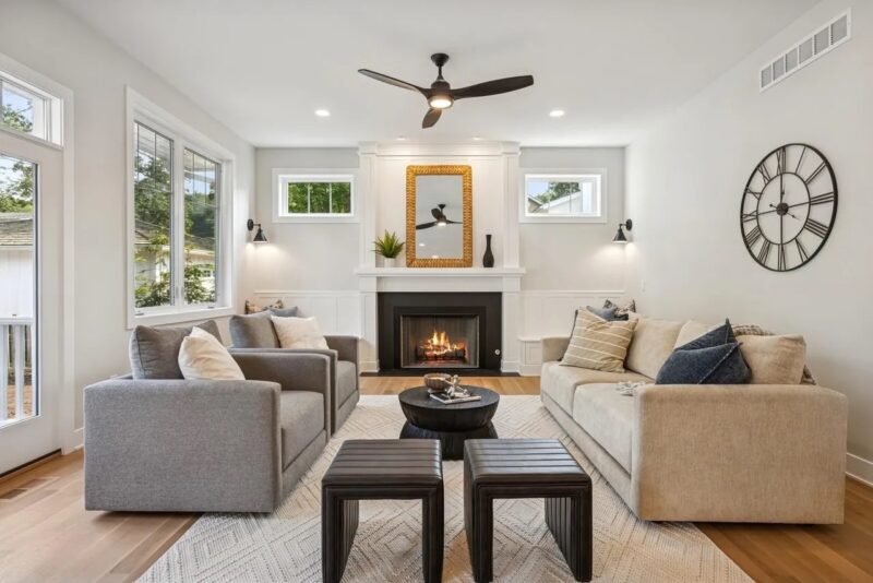 Fireplace: Natural wood-burning fireplace as the centerpiece of the great room