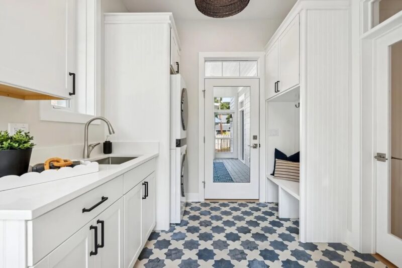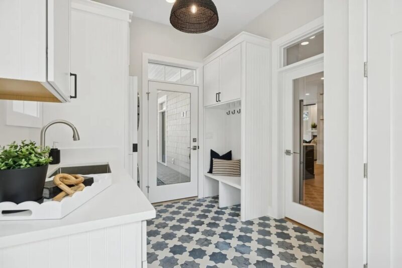 Mud room with built-in storage for organization