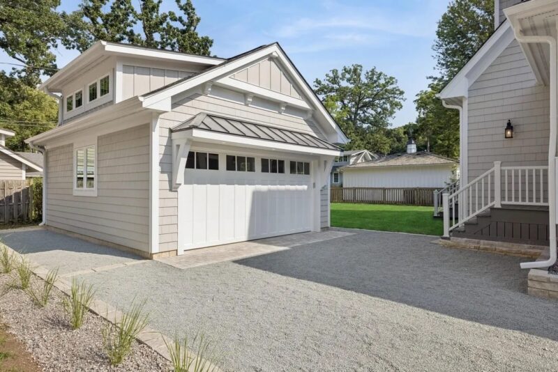 Detached 2-car garage with electric opener and ample parking