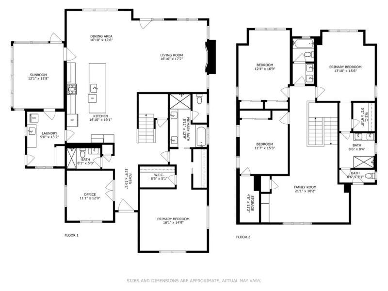 Primary Suite: 16’ x 15’ (main level)